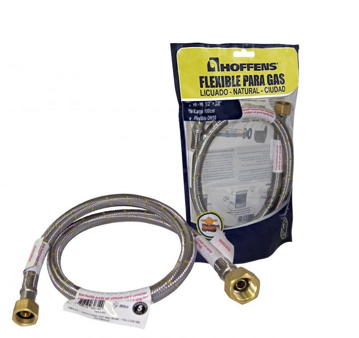 Flexible metálico para gas con conexiones *hembra-hembra (Hi-Hi)*. Diseñado para instalaciones domésticas o comerciales, permite una conexión segura entre artefactos a gas y la red de suministro. Recubrimiento exterior resistente, evita corrosión y garantiza mayor durabilidad.