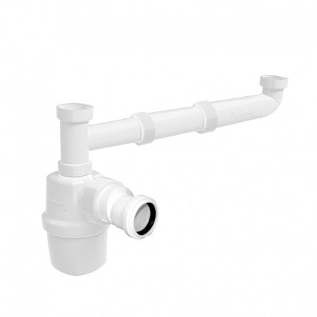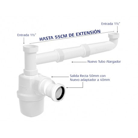 • Descripción: Sifón de plástico blanco con doble entrada para la conexión de dos lavaplatos, con diseño robusto y eficiente.