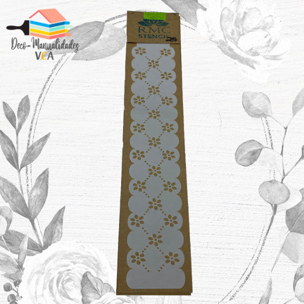 STENCIL BLONDA FLORES 1 (4X30 CM) - RMC Stencil o plantilla reutilizable para decorar manualidades, repostería, entre otros. Se puede utilizar con todo tipo de pinturas y pastas relieve. - Alta calidad: Fabricados en material de alta calidad, resistente a pinturas, solventes químicos, detergentes y calor. - Sustentable: Reutilizable. Usa, lava y vuelve a utilizar cuantas veces quieras. Material 100% reciclable. - Fácil de usar: Semistransparente para facilitar su uso. Flexible para adaptarse a distintas superficies. Resultados increíbles en pocos minutos.