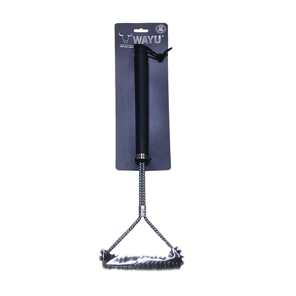 Cepillo especialmente diseñado para limpiar parrillas de forma eficiente y segura. Equipado con cerdas resistentes que eliminan fácilmente los residuos de alimentos quemados y grasa, manteniendo las parrillas en óptimas condiciones de higiene y funcionamiento.