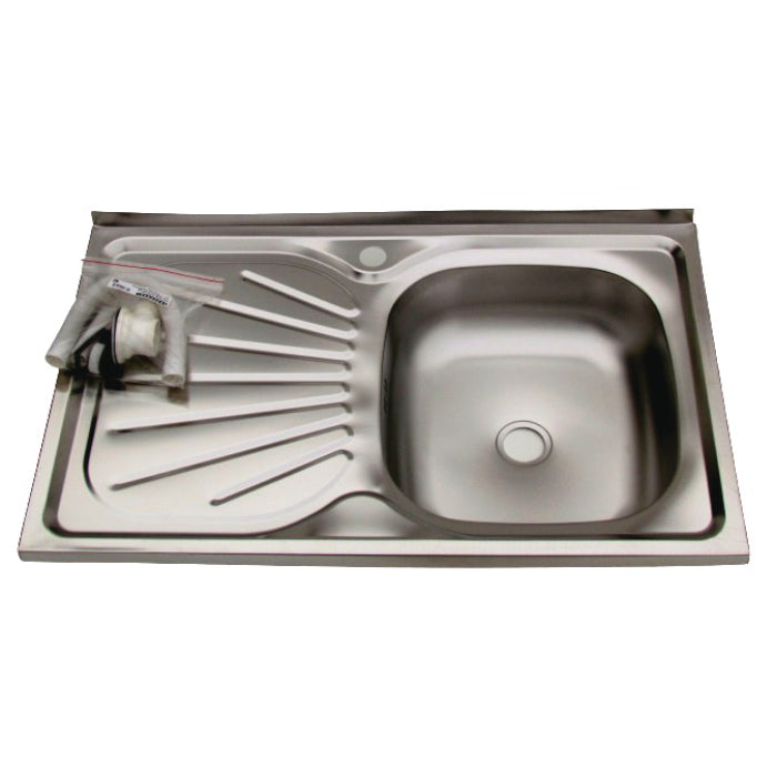 • Descripción: Lavaplatos de acero inoxidable de 100x50 cm con área de escurrido a la izquierda.