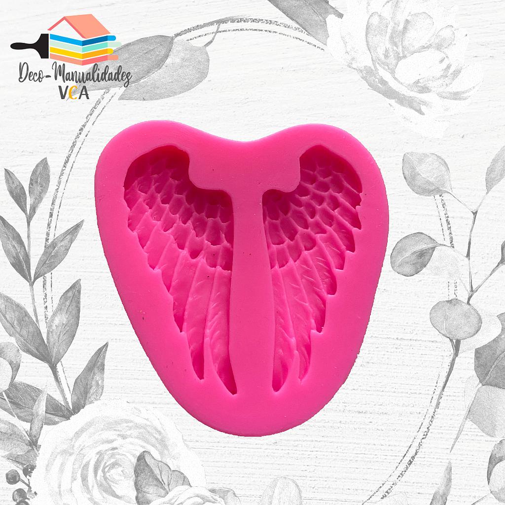 Descripción: Molde de silicona en forma de alas de ángel, con dimensiones de 6,8 x 6,6 cm, adecuado para trabajos de repostería y manualidades.
