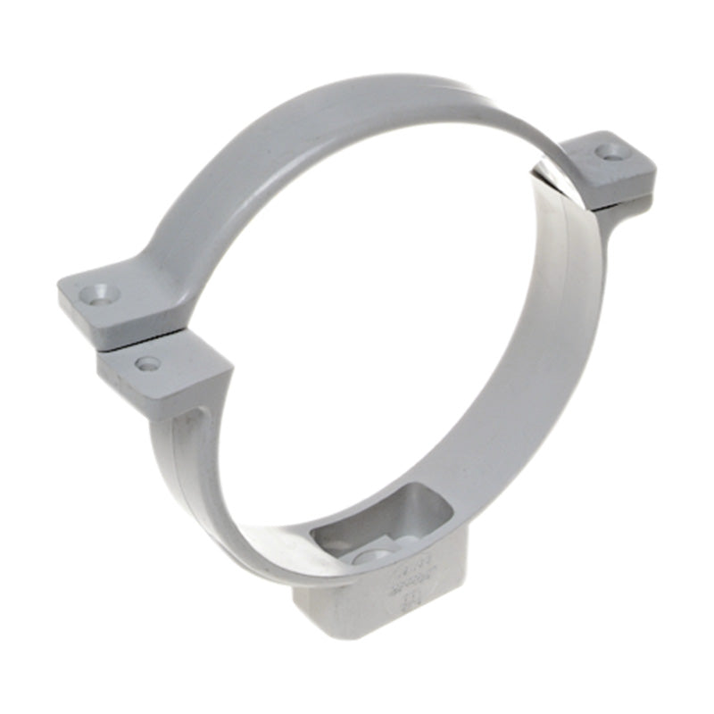 Descripción: Abrazadera blanca para tubos de 80 mm, fabricada en material resistente.