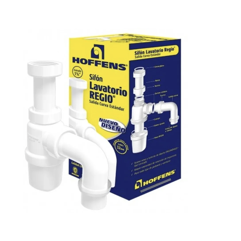 Sifon Lavatorio Mod. Entrada 1.1/4 Salida Curva 32x90 (Blanco - Hoffens)