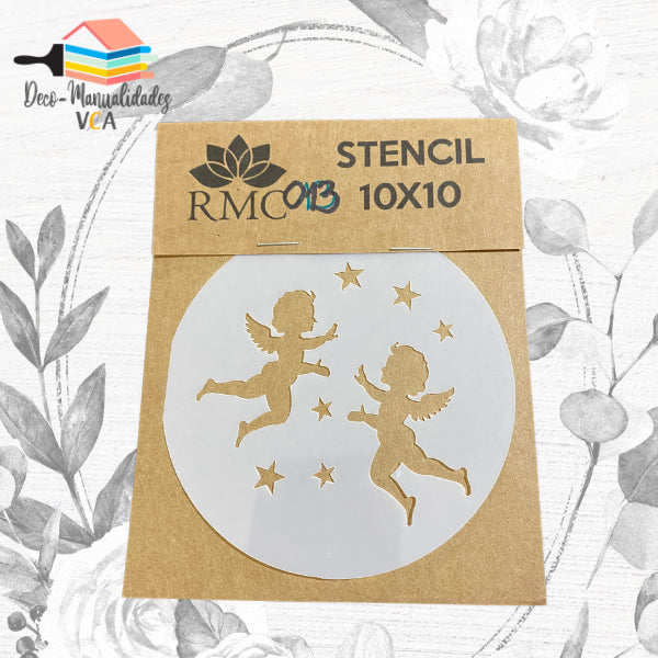 Stencil Silueta Angelitos 10x10 (Stencil Redondo)
